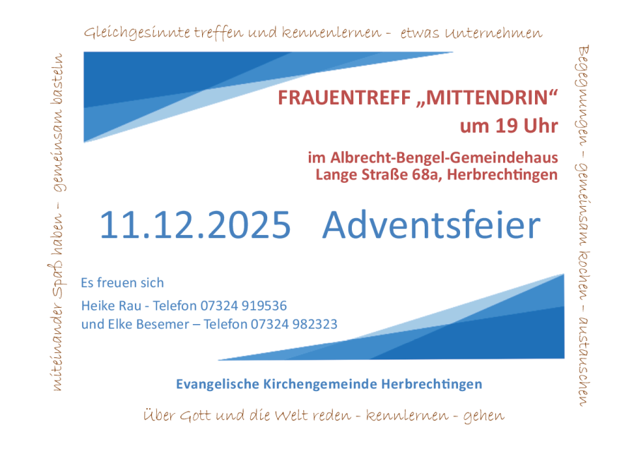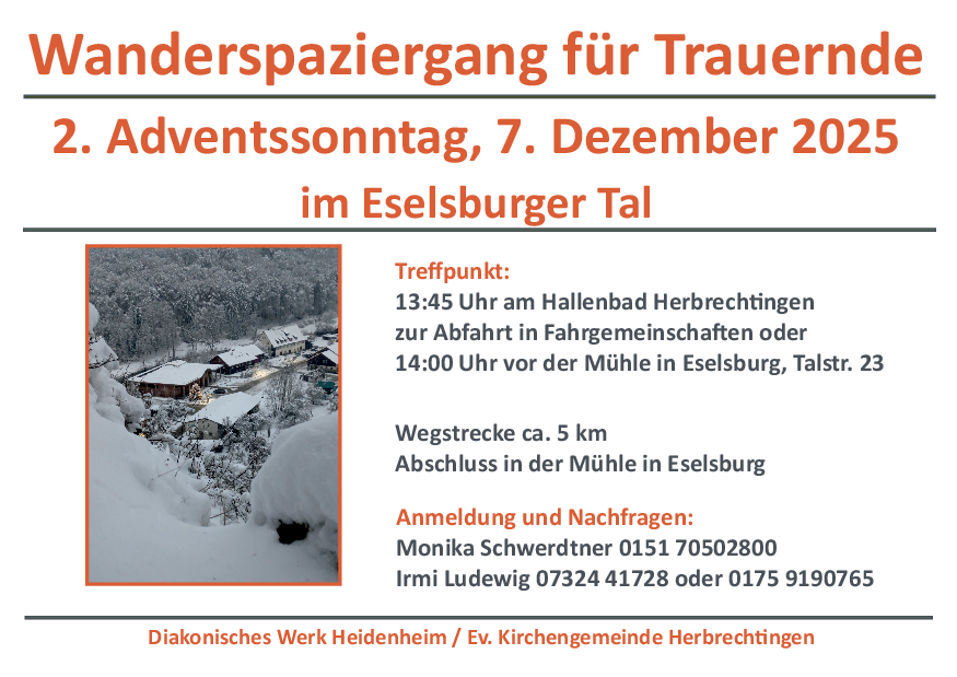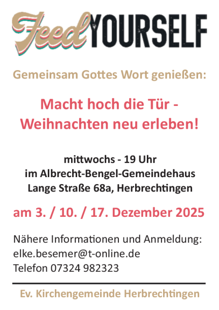 Wenn Sie einen seelsorgerlichen Besuch wünschen, rufen Sie bitte im Pfarramt an – Telefon 07324 919534.