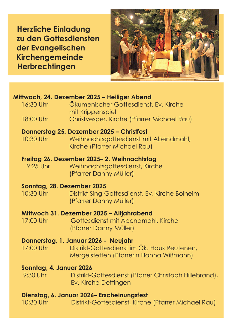 Herzliche Einladung zu den Gottesdiensten